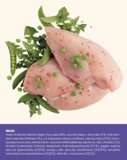 Viande de volaille (viande de poulet fraîche 50%, viande de poulet séchée 15%, foie de volaille hydrolysé 3%)