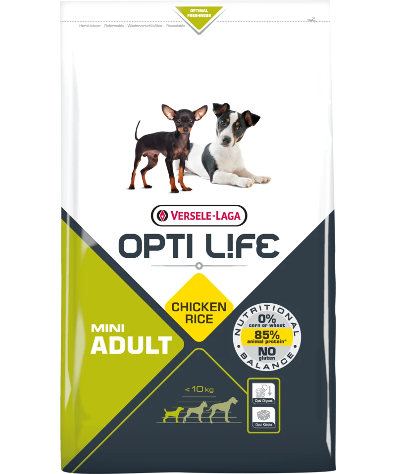 Opti Life Adulte Mini est une formule parfaitement équilibrée pour les petites races (< 10kg) à base de poulet et de riz, spécialement développée pour que votre chien acquière et conserve une condition physique optimale.
